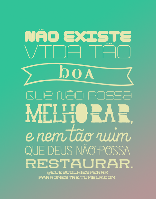 Não existe vida tão boa que não possa melhorar, e nem tão ruim que Deus não possa restaurar.