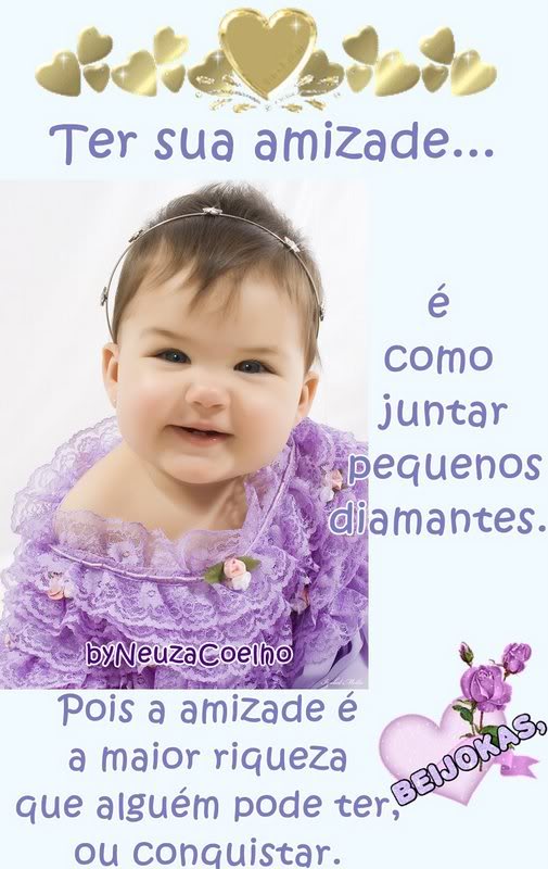 Ter sua amizade é como juntar pequenos diamantes. Pois a amizade é a maior riqueza que alguém pode ter.