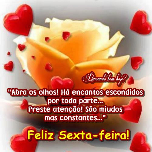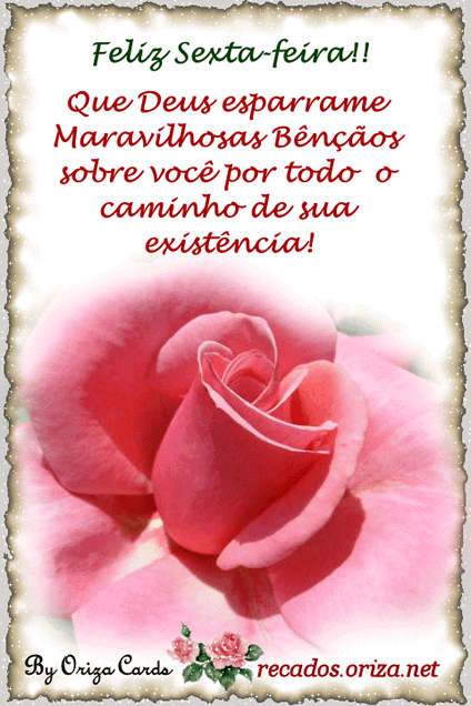 Feliz sexta-feira! Que Deus esparrame maravilhosas bençãos sobre você por todo o caminho de sua existência.