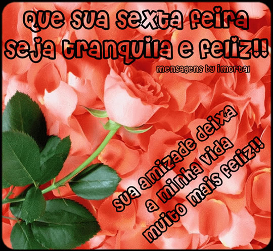Que a sua sexta-feira seja tranquila e feliz! Sua amizade deixa a minha vida muito mais feliz!