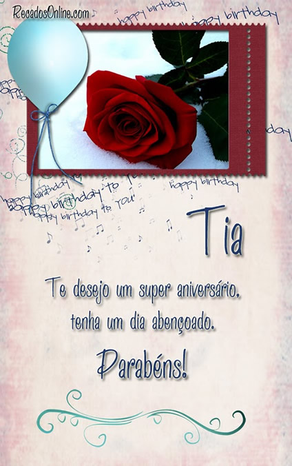 Tia, te desejo um super aniversário Tenha um dia abençoado. Parabéns!