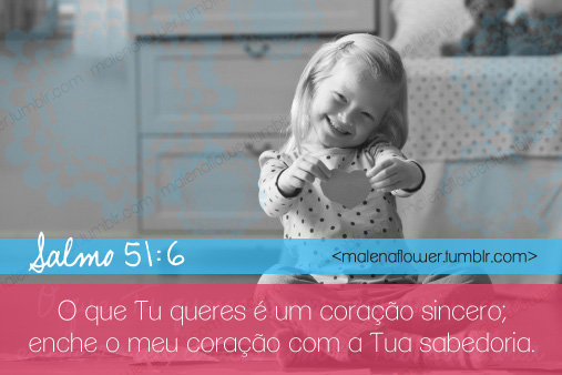 “O que tu queres é um coração sincero; enche o meu coração com a Tua sabedoria.” Salmo 51.6