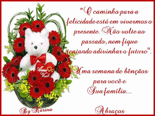 O caminho para a felicidade está em vivermos o presente. Não volte ao passado, nem fique tentando advinhar o futuro. Uma semana de bençãos pra você e sua família… Abraços.