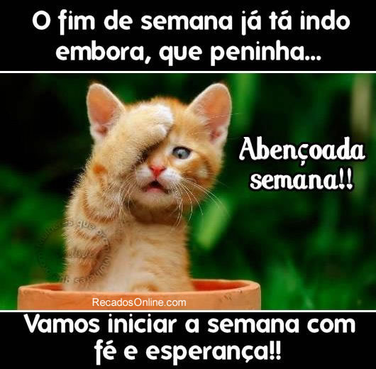 O fim de semana já tá indo embora, que peninha… Abençoada semana! Vamos iniciar a semana com fé e esperança!