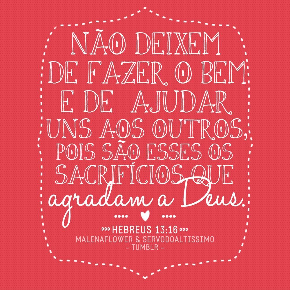 “E não vos esqueçais da beneficência e comunicação, porque com tais sacrifícios Deus se agrada.” Hebreus 13.16