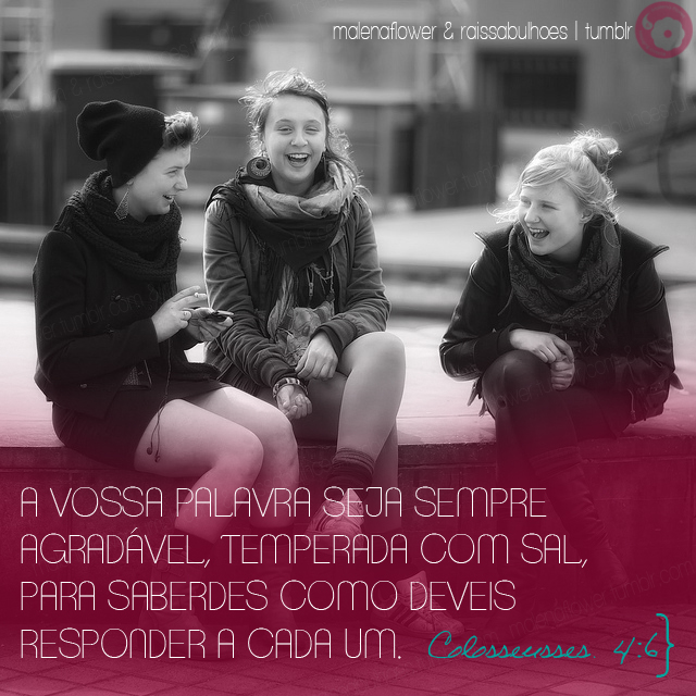 A vossa palavra seja sempre agradável, temperada com sal, para saberdes como deveis responder a cada um. Colossenses 4.6