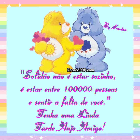Solidão não é estar só. E sim estar entre mil pessoas e sentir falta de apenas uma. Amiga, você é legal!