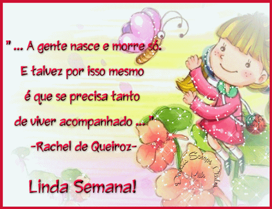 “A gente nasce e morre só. E talvez por isso mesmo é que se precisa tanto de viver acompanhado…” Rachel de Queiroz Linda semana!