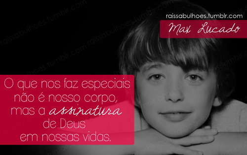 A assinatura de Deus em mim me faz ESPECIAL! 31 de julho de 2012 Por Rosane O que nos faz especiais não é nosso corpo, mas a assinatura de Deus em nossas vidas. Max Lucado