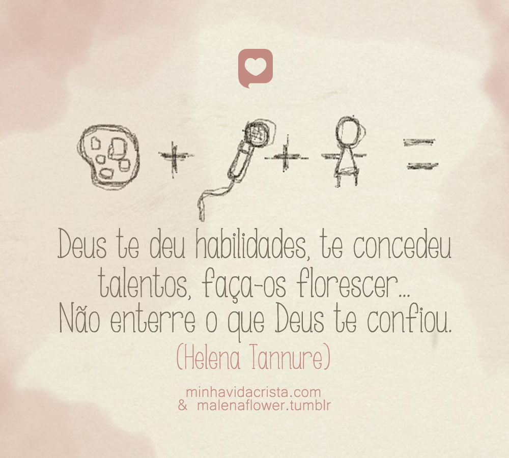 Deus te deu habilidades, te concedeu talentos, faça-os florescer… Não enterre o que Deus te confiou. (Helena Tannure)