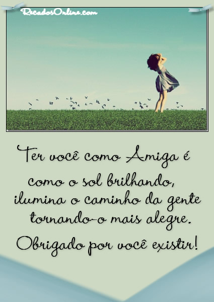 Ter você como amiga é como o sol brilhando, ilumina o caminho da gente tornando-o mais alegre! Obrigado por você existir!