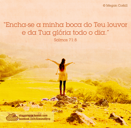Teu Louvor 13 de abril de 2013 Por camibarbosa Encha-se a minha boca do Teu louvor e da Tua Glória todo dia. Salmos 71:8