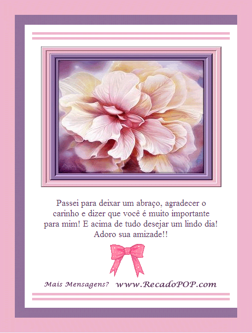 Que sua semana seja divertida Fale com quem você ama, mande abraços e beijos aos amigos e amigas, faça alguém feliz! Te gosto muito!