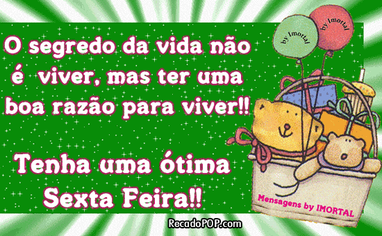 O segredo da vida não é viver, mas ter uma boa razão para viver! Tenha uma ótima sexta-feira!