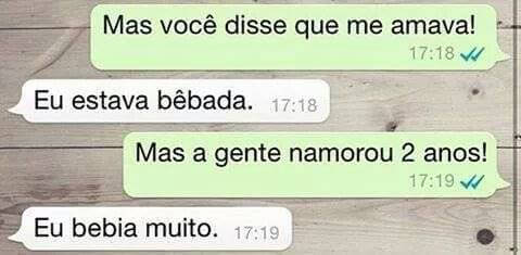 Mas você disse que me amava. Eu estava Bêbada. Mas a gente namorou dois anos. Eu bebia muito.