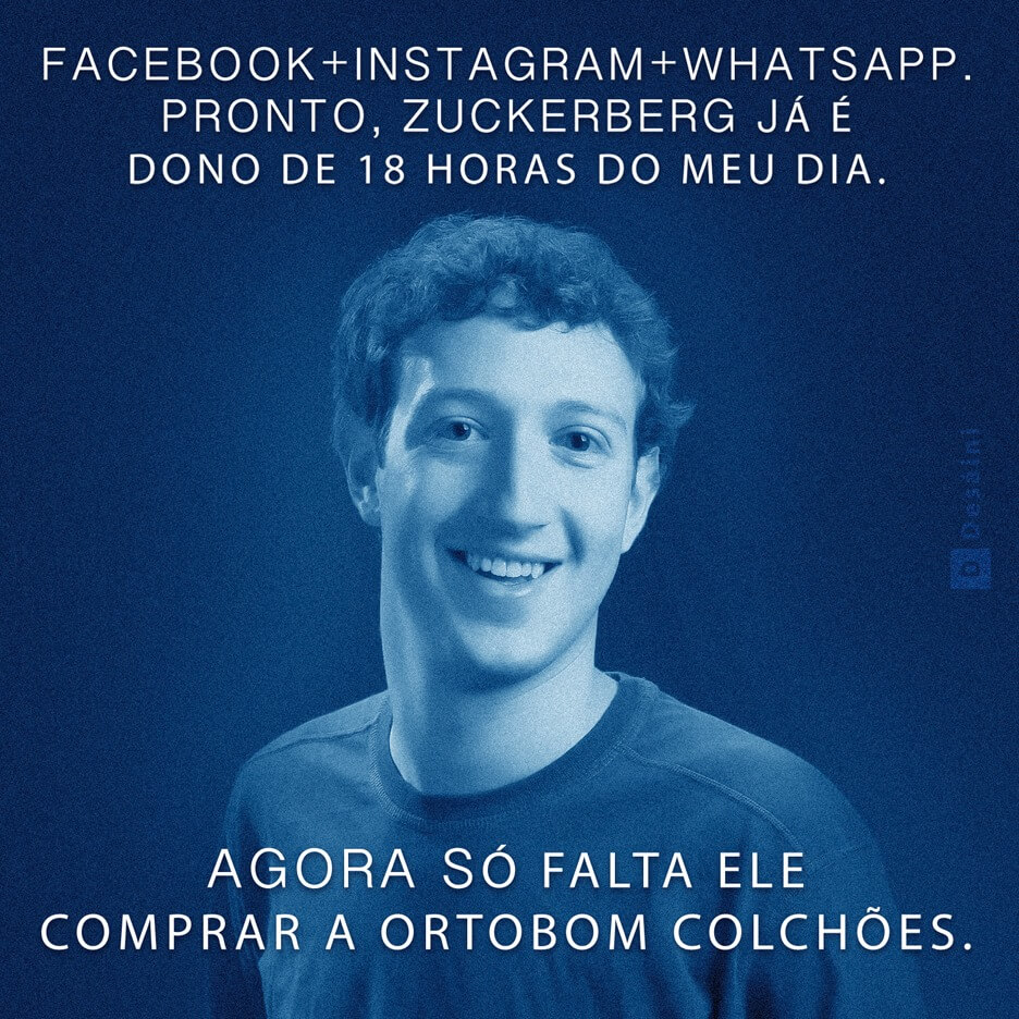 Facebook + Instagram + Whatsapp. Pronto, Zuckerberg já é dono de 18 horas do meu dia… Agora só falta comprar a ortobom colchões!