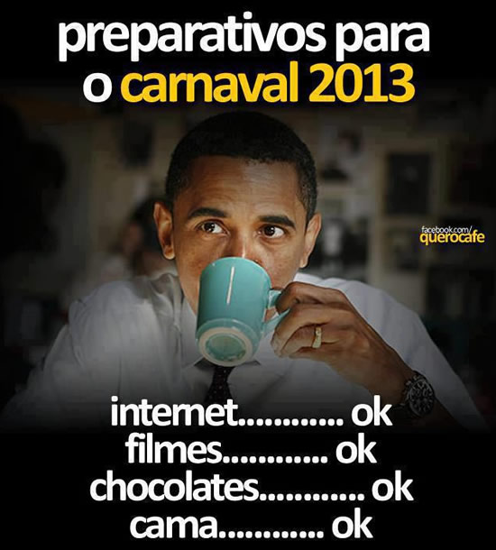 Preparativos para o carnaval 2013 Internet… ok Filmes… ok Chocolate… ok Cama… ok
