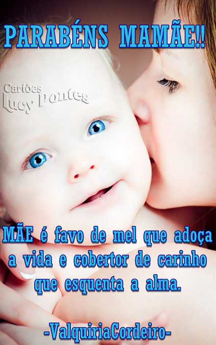 Parabéns mamãe! Mãe é favo de mel que adoça a vida e cobertor de carinho que esqueneta a alma. (Valquiria Cordeiro)