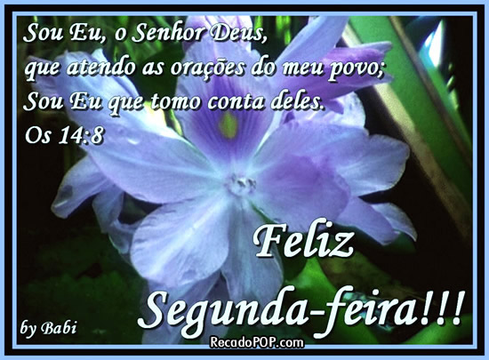 Eu, o Senhor Deus, que atendo as orações do meu povo; sou Eu que tomo conta deles. Oséias 14.8 Feliz segunda-feira!