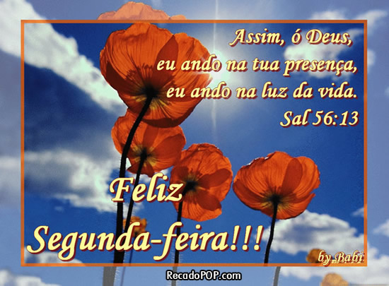 “Assim, oh Deus, eu ando na Tua presença, eu ando na luz da vida.” Salmos 53.13 Feliz segunda-feira!