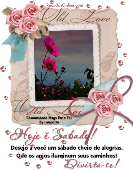 Hoje é sábado! Desejo a você um sábado cheio de alegrias. Que os anjos iluminem seus caminhos. Divirta-se!