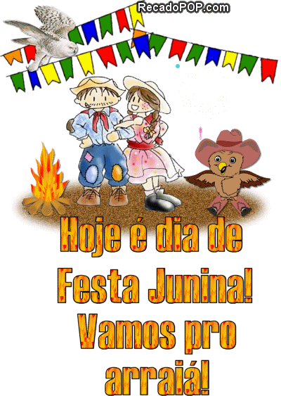 Feliz festa junina! A festa é sinônimo de alegria… Arde uma fogueira no chão… Assam-se batatas, bebem quentão A menina pula a fogueira e esquenta meu coração!