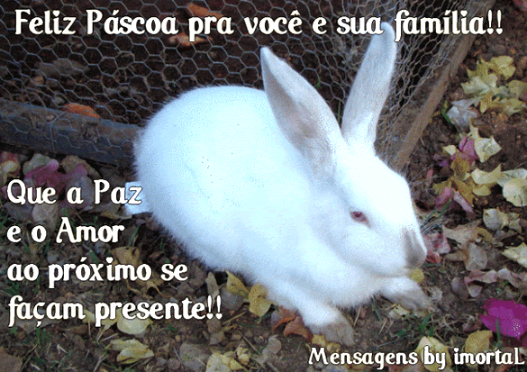 Feliz páscoa pra você e sua família! Que a paz e o amor ao próximo se façam presentes.