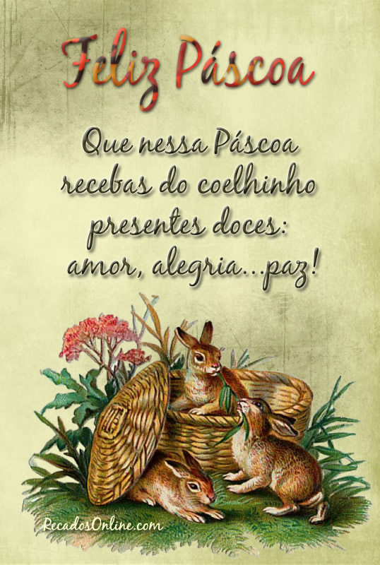 Feliz páscoa! Que nessa páscoa recebas do coelhinho presentes doces: amor, alegria… paz!
