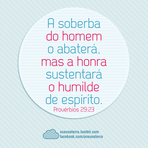 “A soberba do homem o abaterá, mas a honra sustentará o humilde de espírito.” Provérbios 29.23