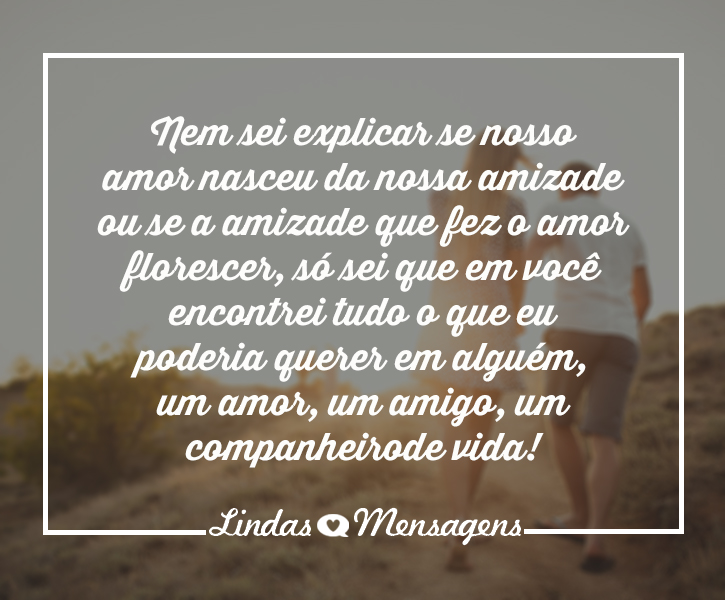A nossa amizade é uma mistura de sentimentos, existe amor e existe amizade. O importante é estamos felizes e somos amigos para a vida toda.